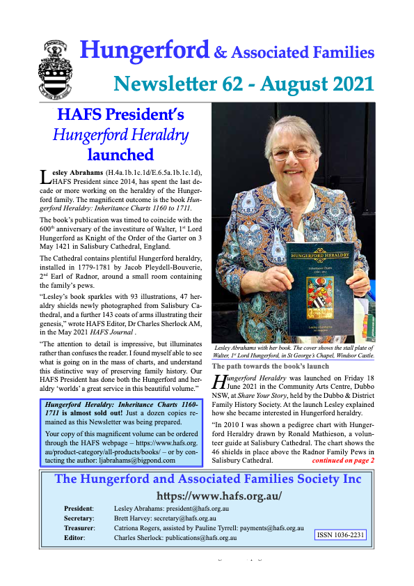The Newsletters are © The Hungerford & Associated Families Society Inc and must not be reproduced in any form including your own website or third party websites such as Ancestry. You may print or save a single copy for your own personal use. Please contact us to request permission for any other use.